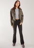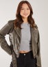Pink Vanilla Olive Stone Wash PU Biker Jacket