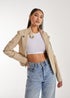 Pink Vanilla Stone Faux PU Leather Biker Jacket