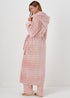 Learn morePrettify your evening line-up with the help of this snuggly dressing gown. In a dashing shade of pink and featuring zigzag detailing all over, it comes with two working pockets, a practical tie to the waist and a hood for extra toasty comfort. What's not to love? Model Height: 5ft 9.