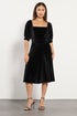 Designed for women 5ft 3in and under. Upgrade your dress collection with this midi dress. Made from a soft jersey fabric, it features a velvet finish, square neckline, short balloon sleeves and is complete in a fit and flare style. Pair with heels for the ultimate going-out look!