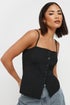 Structure your work-to-wine style with this button vest top. Made from a structured woven fabric, it features a square neckline, thin adjustable straps and front button fastenings with a split hem design. Pair alongside a denim of your choice and throw-over a bomber for a trending look you'll love! Model is 5'1" / 155 cm and size UK 6 / EU 34.