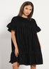 PixieGirl Petite Black Velvet Frill Smock Mini Dress