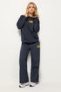 Designed for women 5ft 3in and under. Up your sweats game with these wide leg joggers. Made from a comfortable cotton blend fabric, they feature a ''NY Soho' slogan, side pockets and complete with an elasticated drawstring tie and wide leg style. Pair with a basic tee for a cosy and casual outfit - perfect to chill in! Model is 5'3"/160cm and size UK 8/EU 36.