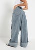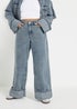 Welcome these jeans into your denim rotation this new season. Made from a comfortable denim fabric, they feature a turn up design, belt loops and complete in a wide leg fit. Dress to all your events with our turn up jacket and trainers for a cool girl fit you'll rock! Model is 5'1" / 155 cm and size UK 6 / EU 34.