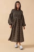 PixieGirl Petite Brown Animal Shirred Puff Sleeve Maxi Dress