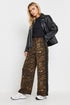 PixieGirl Petite Brown Leopard Print Striped Wide Leg Trousers