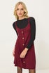 PixieGirl Petite Burgundy Red Ribbed Button Mini Dress