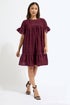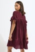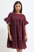 PixieGirl Petite Burgundy Red Velvet Frill Smock Mini Dress
