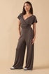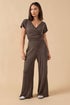 PixieGirl Petite Chocolate Brown Wrap Wide Leg Jumpsuit