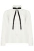 • PixieGirl Petite Ivory White Lace Trim Tie Neck Shirt