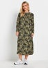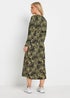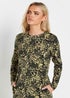 PixieGirl Petite Khaki Green Abstract Animal Long Sleeve T-Shirt Dress