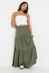 PixieGirl Petite Khaki Green Asymmetric Tiered Maxi Skirt