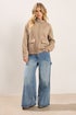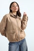 PixieGirl Petite Natural Brown Faux Suede Bomber Jacket