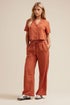 PixieGirl Petite Rust Orange Linen Cropped Short Sleeve Shirt