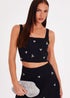 Quiz Black Embellished Square Neck Top