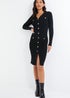 • Gold button detail • Pocket detail • Ribbed texture • Bodycon fit • Long sleeved • V neckline • Model height: 5' 9" • Model wears size s • Always check the wash care label, cool hand wash with mild detergent
