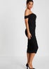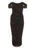 Quiz Black Mesh Bardot Ruched Midi Dress