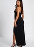 Quiz Black Petite Diamante Ruched Maxi Dress