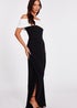 Quiz Black Pleated Bardot Maxi Dress