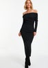 Quiz Black Ribbed Bardot Bodycon Midi Dress