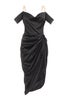 Quiz Black Satin Ruched Cold Shoulder Midi Dress