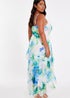 Quiz Blue Curve Floral Chiffon Midaxi Dress