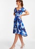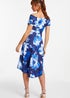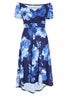 Quiz Blue Floral Bardot Dip Hem Midi Dress