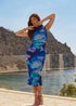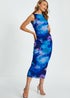 Quiz Blue Mesh Tie Dye Print Midaxi Dress