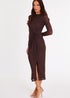 Quiz Brown Petite Diamante Mesh Midaxi Dress