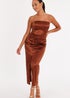 Quiz Brown Petite Satin Corset Midaxi Dress