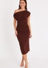 Quiz Brown Ruched Off Shoulder Midi Dress