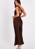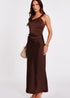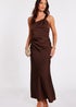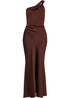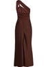Quiz Brown Satin One Shoulder Midaxi Dress