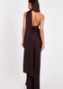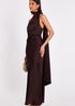 Quiz Brown Satin Wrap Neck Maxi Dress