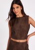 Quiz Brown Studded Faux Leather Top