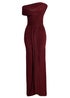 Quiz Burgundy Off Shoulder Ruched Maxi Dress