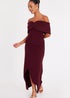 Quiz Burgundy Petite Bardot Wrap Maxi Dress