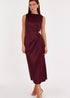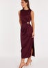 Quiz Burgundy Satin Buckle Side Midaxi Dress
