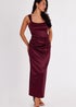 Quiz Burgundy Square Neck Satin Midaxi Dress