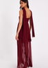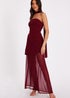 Quiz Burgundy Strapless Mesh Hem Maxi Dress