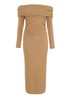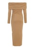 Quiz Camel Ribbed Bardot Bodycon Midi Dress