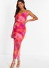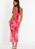 Quiz Fuschia Print Mesh Cowl Neck Midaxi Dress