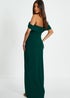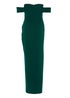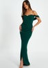Quiz Green Bardot Ruched Maxi Dress