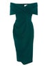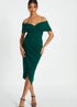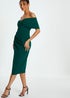 Quiz Green Bardot Ruched Wrap Midi Dress