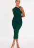 Quiz Brown Petite One Shoulder Ruched Dress