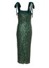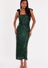 Quiz Green Sequin Bow Detail Midaxi Dress