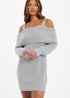 Quiz Grey Knitted Cold Shoulder Jumper Dress