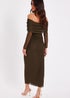 Quiz Khaki Mesh Bardot Ruched Midi Dress