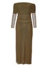 Quiz Khaki Mesh Bardot Ruched Midi Dress