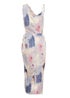 Quiz Multi Satin Marble Print Ruched Midi Dress
