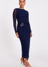 Quiz Navy Petite Mesh Buckle Midaxi Dress